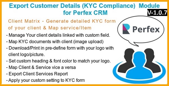 “ Export Customer Details (KYC Compliance) ”, this module can be use in Perfex CRM to add extra features for clients management